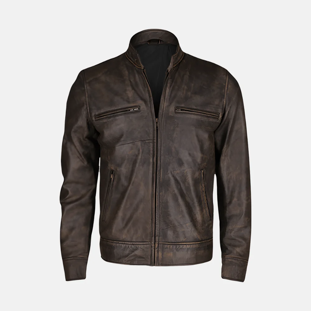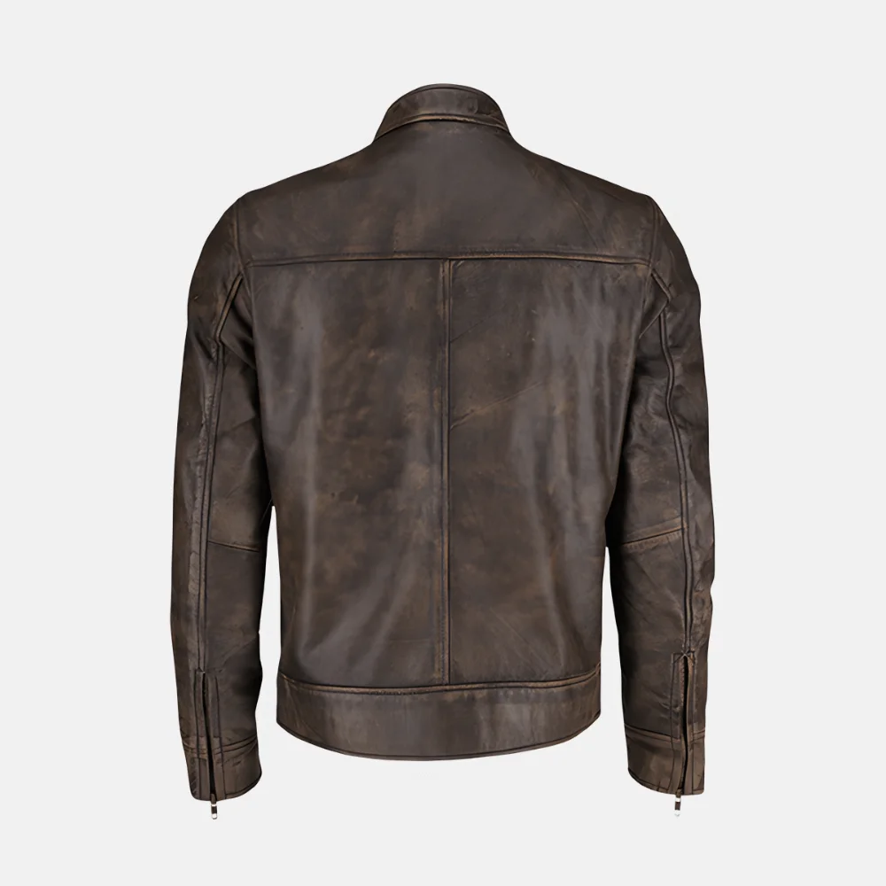 Every detail echoes Voight’s rugged persona — from the distressed dark brown leather that feels lived-in from day one to the sleek, waist-length silhouette that flatters every frame. The band collar adds a modern biker edge, while the precision tailoring ensures a snug yet comfortable fit that moves as you do. Whether you’re commanding attention downtown or cruising open highways, this jacket turns heads and tells stories.
