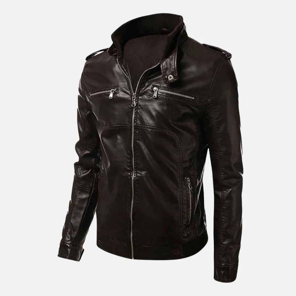 Buy Gavin Men’s Brown Biker Hooded Leather Jacket with Adjustable Hood Now On Sale