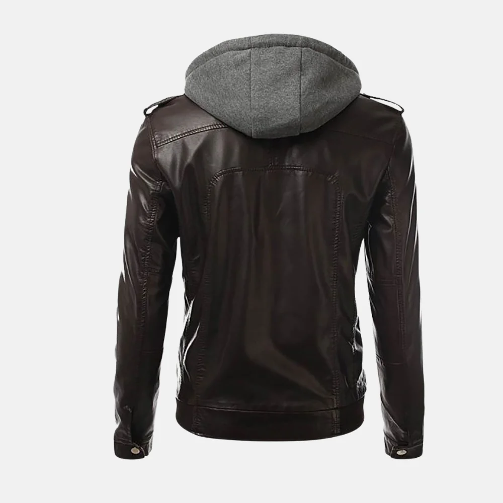 Gavin Men’s Brown Biker Hooded Leather Jacket with Adjustable Hood