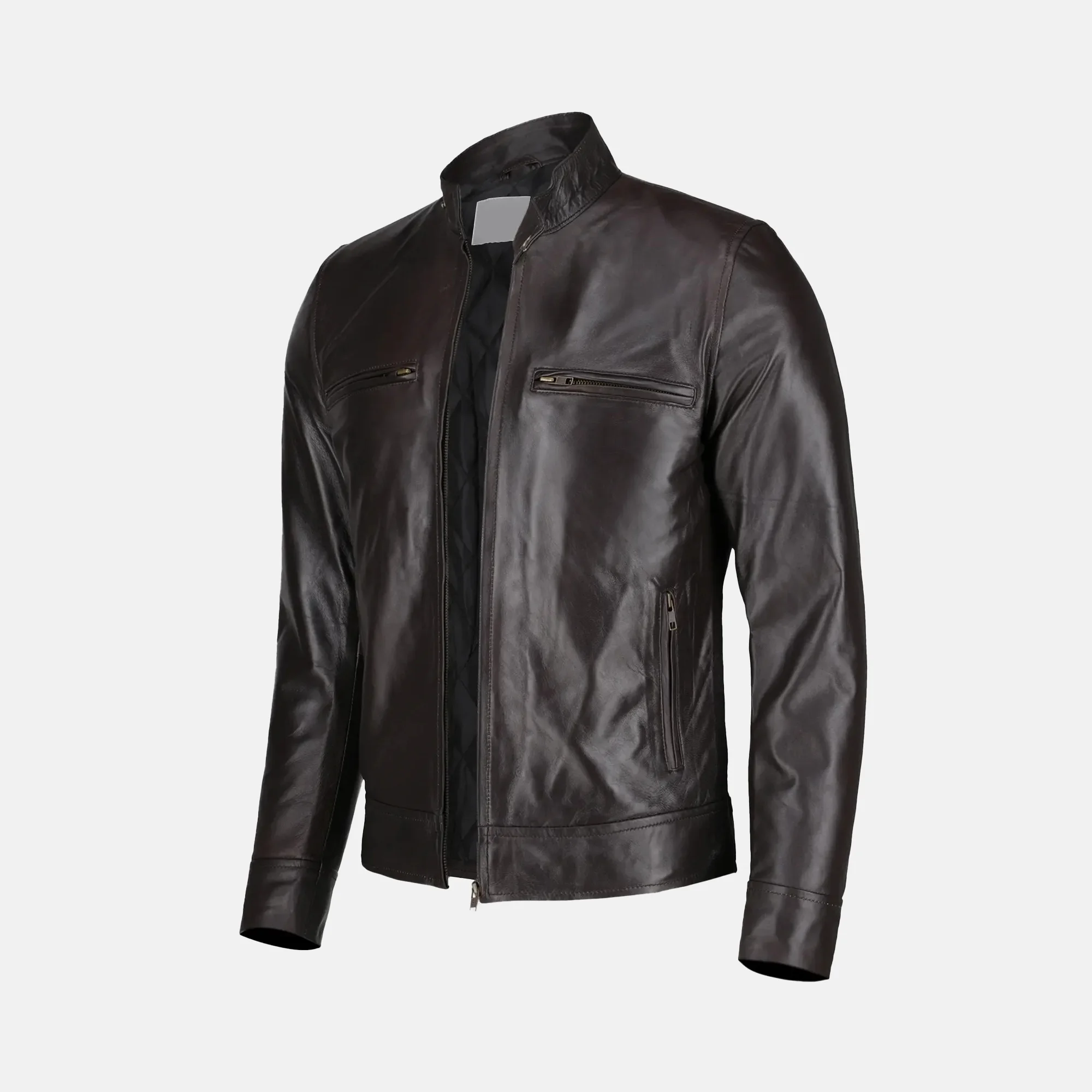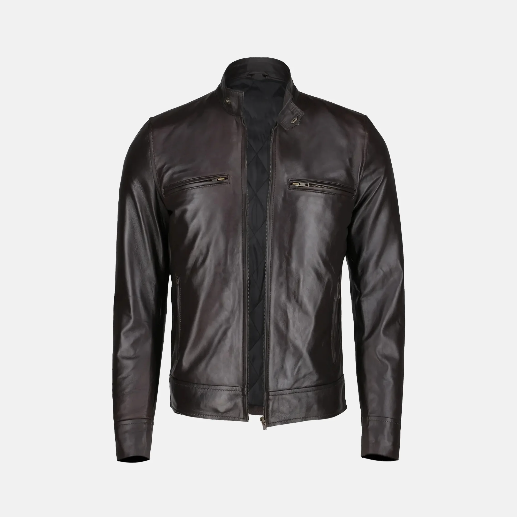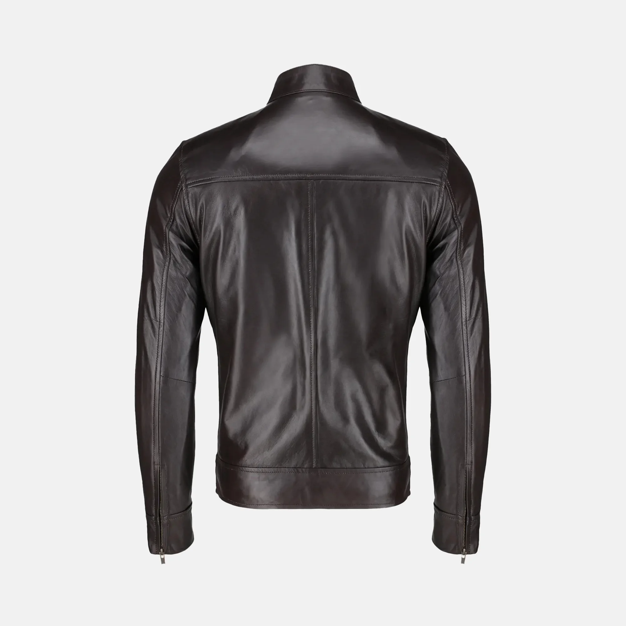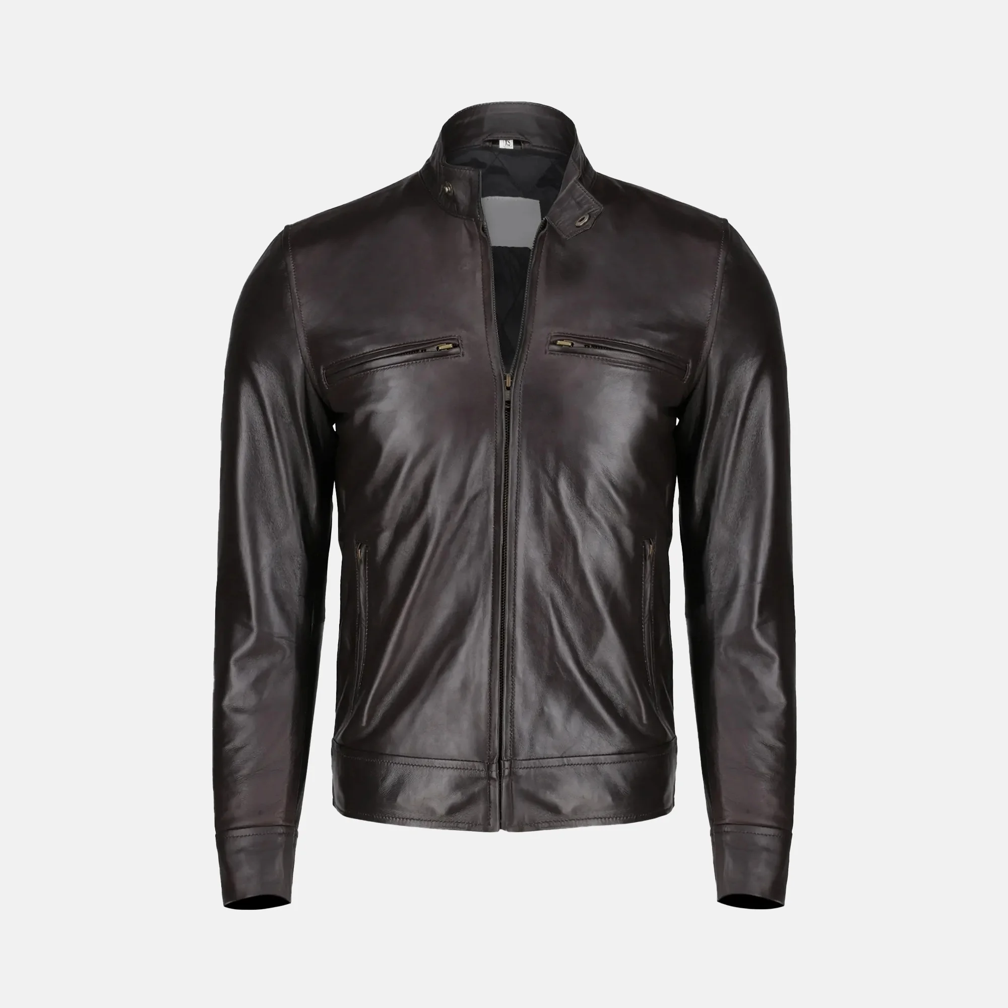 Buy Jaxon Men’s Dark Brown Leather Cafe Racer Motorcycle Jacket Now On Sale