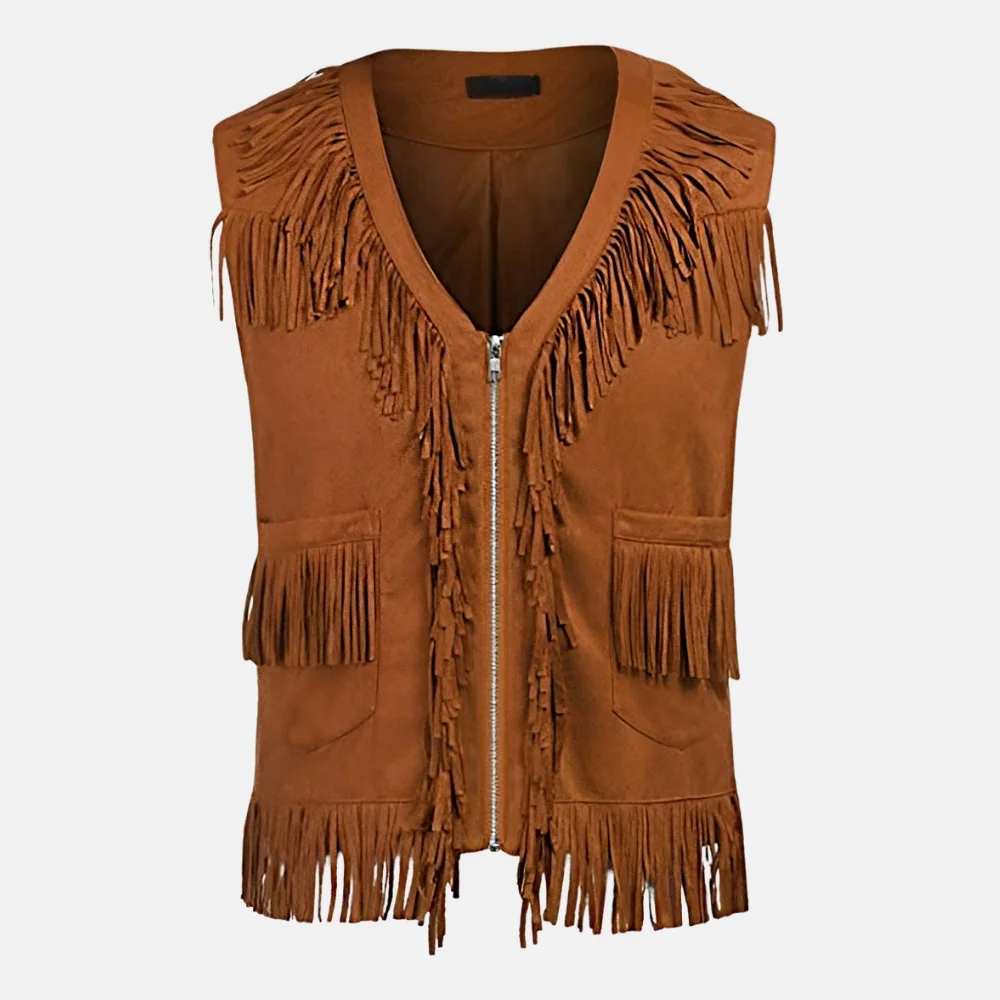 Levi Men’s Brown Suede Leather Fringe Vest for Western Look