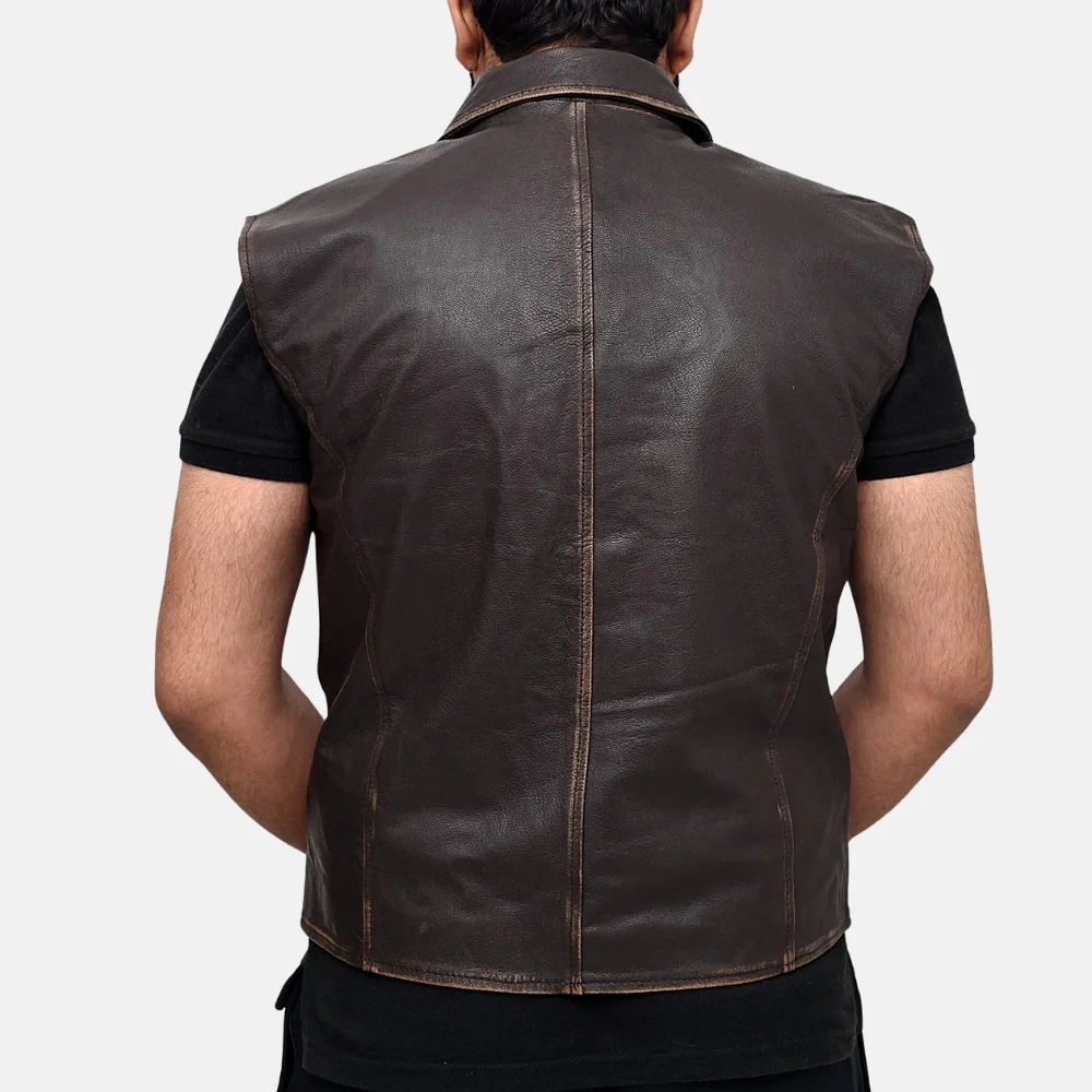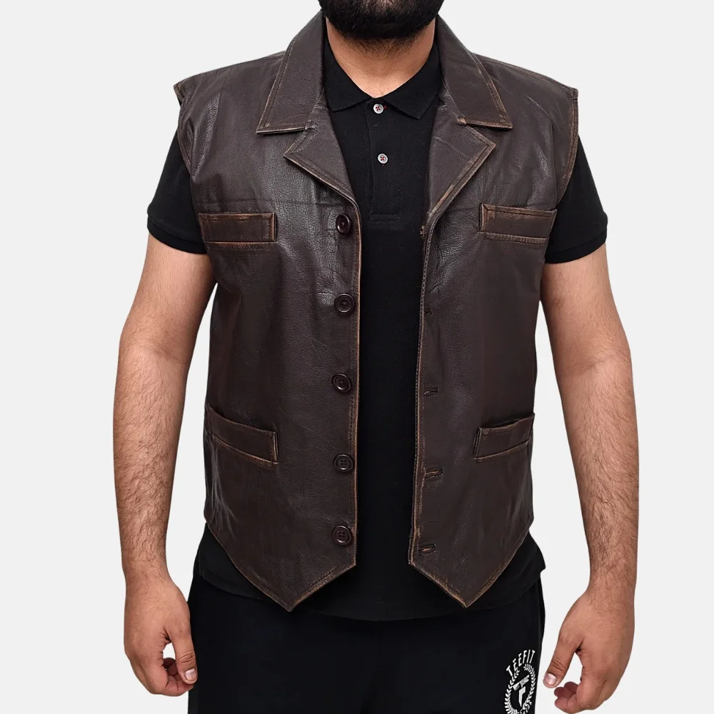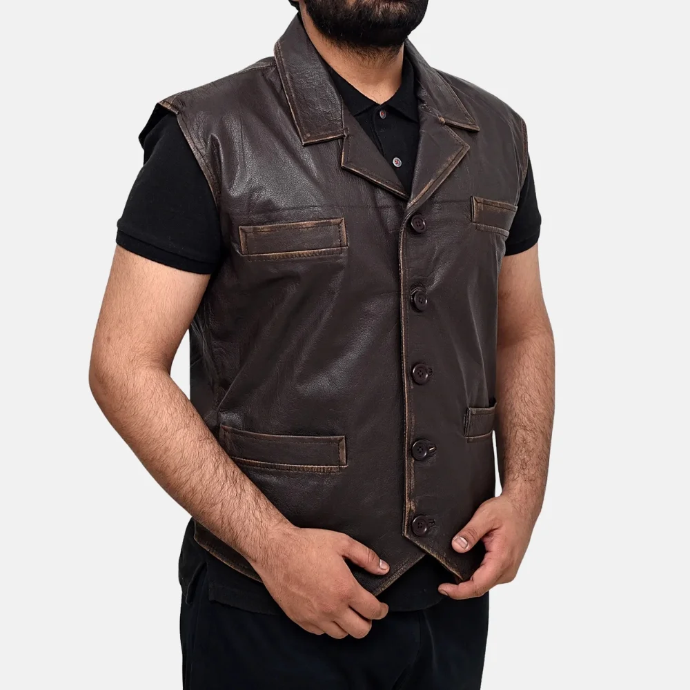 Buy Liam Men’s Dark Brown Vintage Leather Vest with Two Pockets Now On Sale