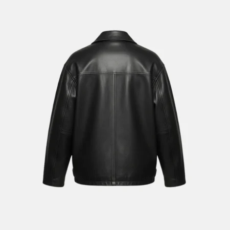 • Hailey Bieber Black Oversized Bomber Leather Jacket - 34 % Off